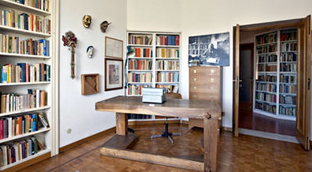 La casa di Alberto Moravia conserva le tracce della sua vita quotidiana, dei viaggi e delle frequentazioni. Dalle maschere africane ai makemono orientali; dai celebri ritratti alle opere degli amici pittori e scultori; dai souvenir di viaggio ai dischi e ai classici della letteratura; dalle lampade pop anni Sessanta alla macchina da scrivere Olivetti 82.