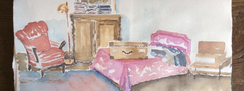 ti scrivo per ringraziarti di averci ospitato nella tua splendida casa. Grazie per aver dato a tutti noi, carnettisti e urban sketchers dello Sketchcrawl Roma, la possibilità di poterci raccogliere tra le cose a te più care, ammirarle e sfiorarle, ascoltare la storia e i ricordi di cui ciascuno di esse parlava. Ognuno di noi è stato animato dal desiderio di catturare qualcosa di speciale che abitava la tua casa. Di catturare qualcosa di te. Abbiamo messo su carta segni e colori che raccontano le tue passioni, la tua storia e anche le tue più semplici abitudini: i libri, la scrivania con la macchina da scrivere ed ogni angolo della tua casa ricca di memorie e di evocazioni uniche. Abbiamo disegnato e colorato nel massimo silenzio, con la paura di spezzare l’atmosfera nella quale eravamo immersi, ma anche con il rispetto per quelle stanze che ci ospitavano generose. Abbiamo immaginato di vederti, di parlare con te. Abbiamo cercato di guardare le cose che disegnavamo con i tuoi occhi e il tuo cuore con la sensazione, a volte, che tu fossi lì con noi, che ci accompagnassi stanza dopo stanza verso la conoscenza del tuo mondo. Abbiamo avvertito la tua compagnia, mentre accucciati in un angolo della casa guardavamo intenti un oggetto che stavamo riportando sui nostri fogli da disegno. Siamo stati bene, avvolti in quella preziosa atmosfera che si respirava solida e intatta. Ci siamo emozionati. E questo non lo dimenticheremo mai. Grazie per averci accolto nelle tue stanze, caro Moravia. Grazie per tutto quello che ancora una volta hai donato ad ognuno di noi. Non vediamo l’ora di tornare a trovarti ancora una volta con le nostre matite, colori e taccuini per raccontare a modo nostro il tuo mondo. Per noi viaggiare con matita e taccuino in tasca, guardare ciò che ci circonda e fissarlo su un foglio serve a raccontare una storia e – soprattutto – serve a ricordarla.
