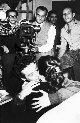 Moravia regista sul set di Colpa del sole, anni '50.